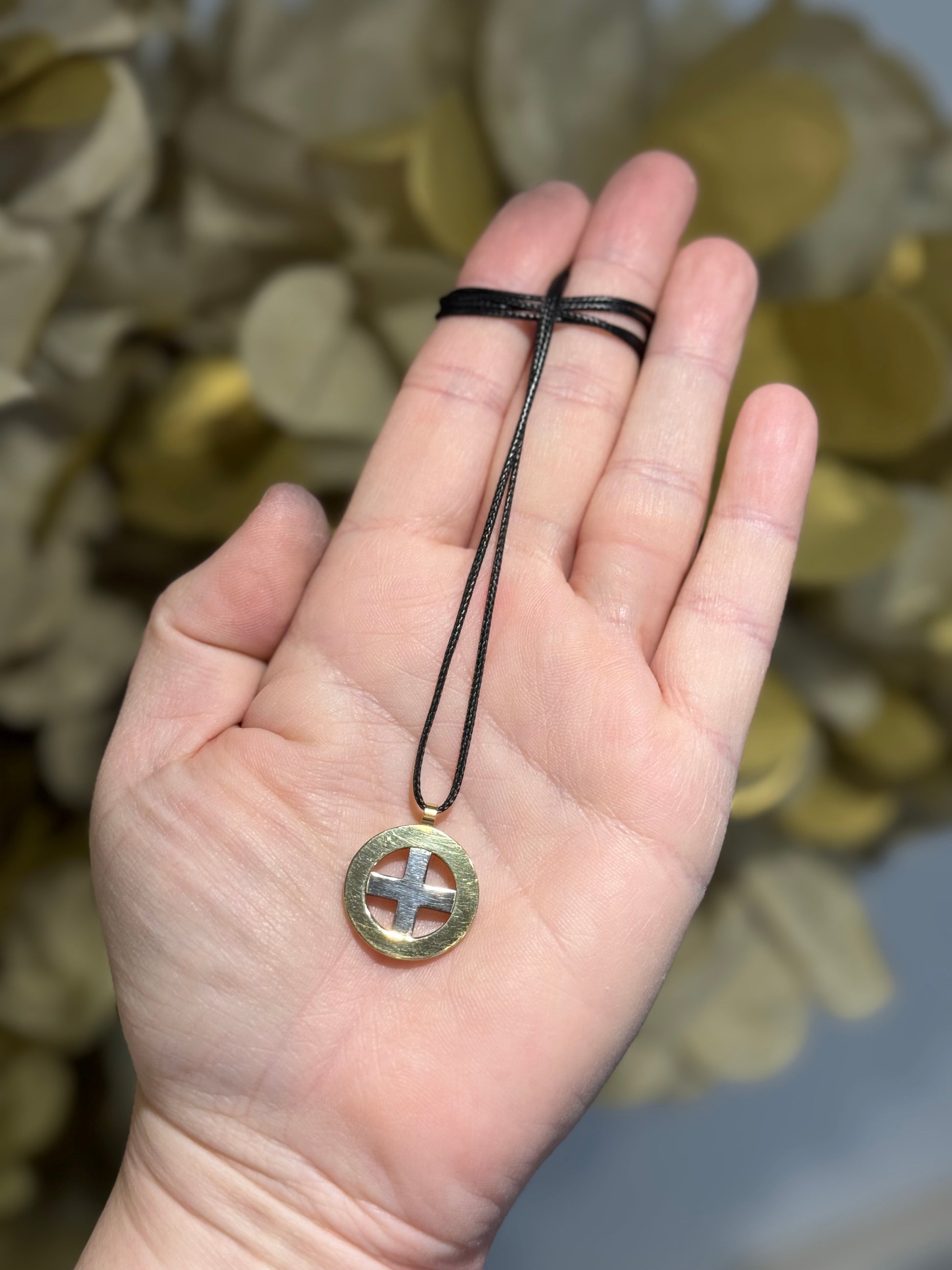 The outer circle of rich yellow gold contrasts beautifully with a white gold cross inside, creating a piece that’s both contemporary and timeless. This design is inspired by Cornish crosses.