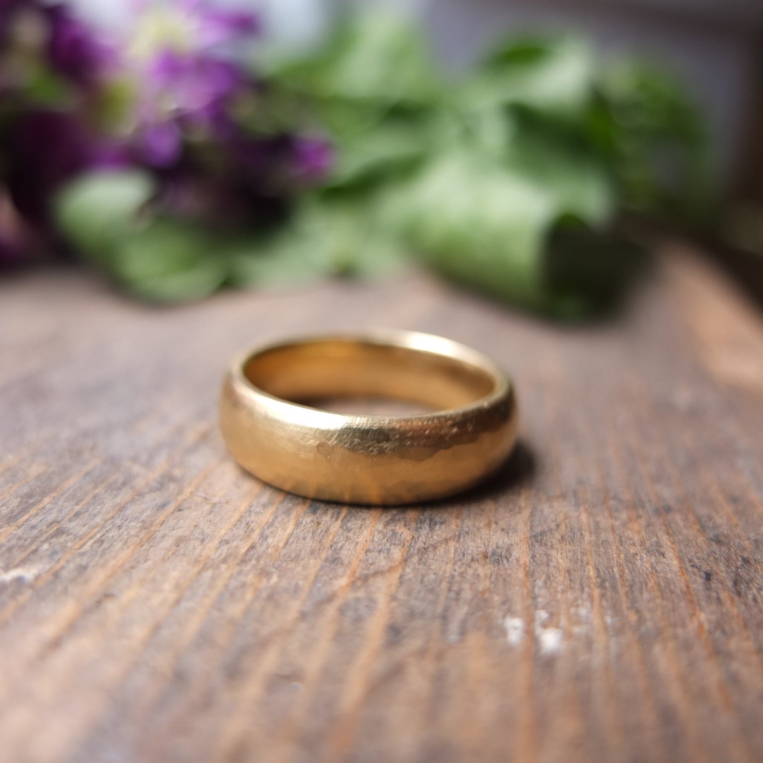 My signature matt/carved contemporary/ancient looking wedding band. My favourite of the precious yellow metals.