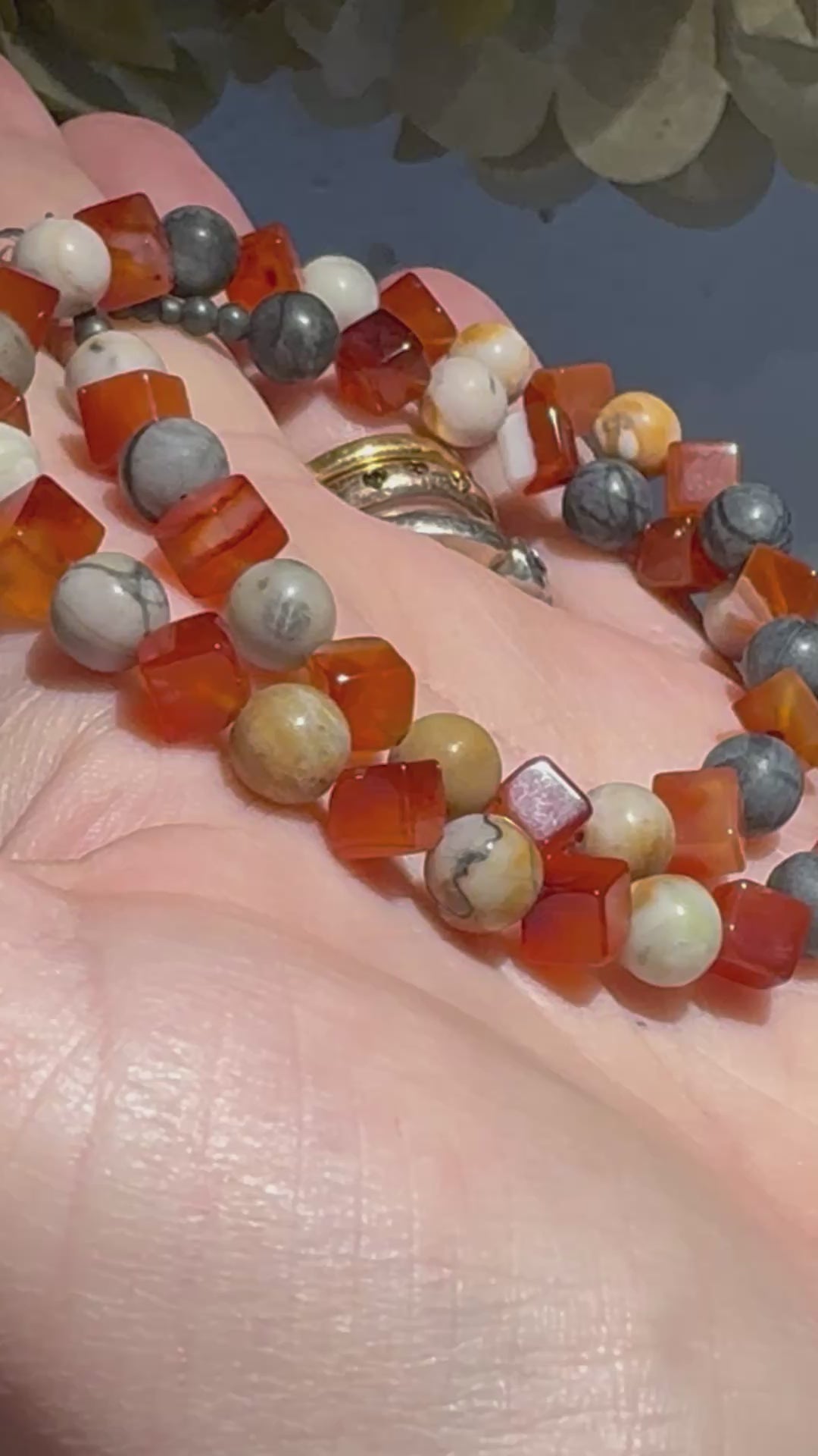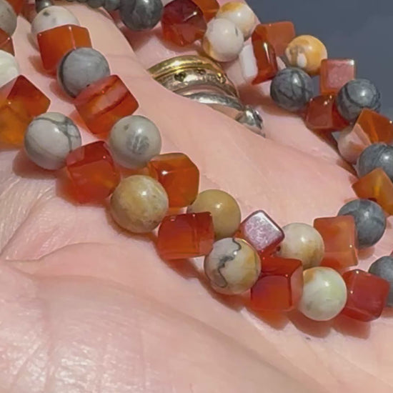 Alternate Picasso Jasper & cube Cornelian bead silver necklace.