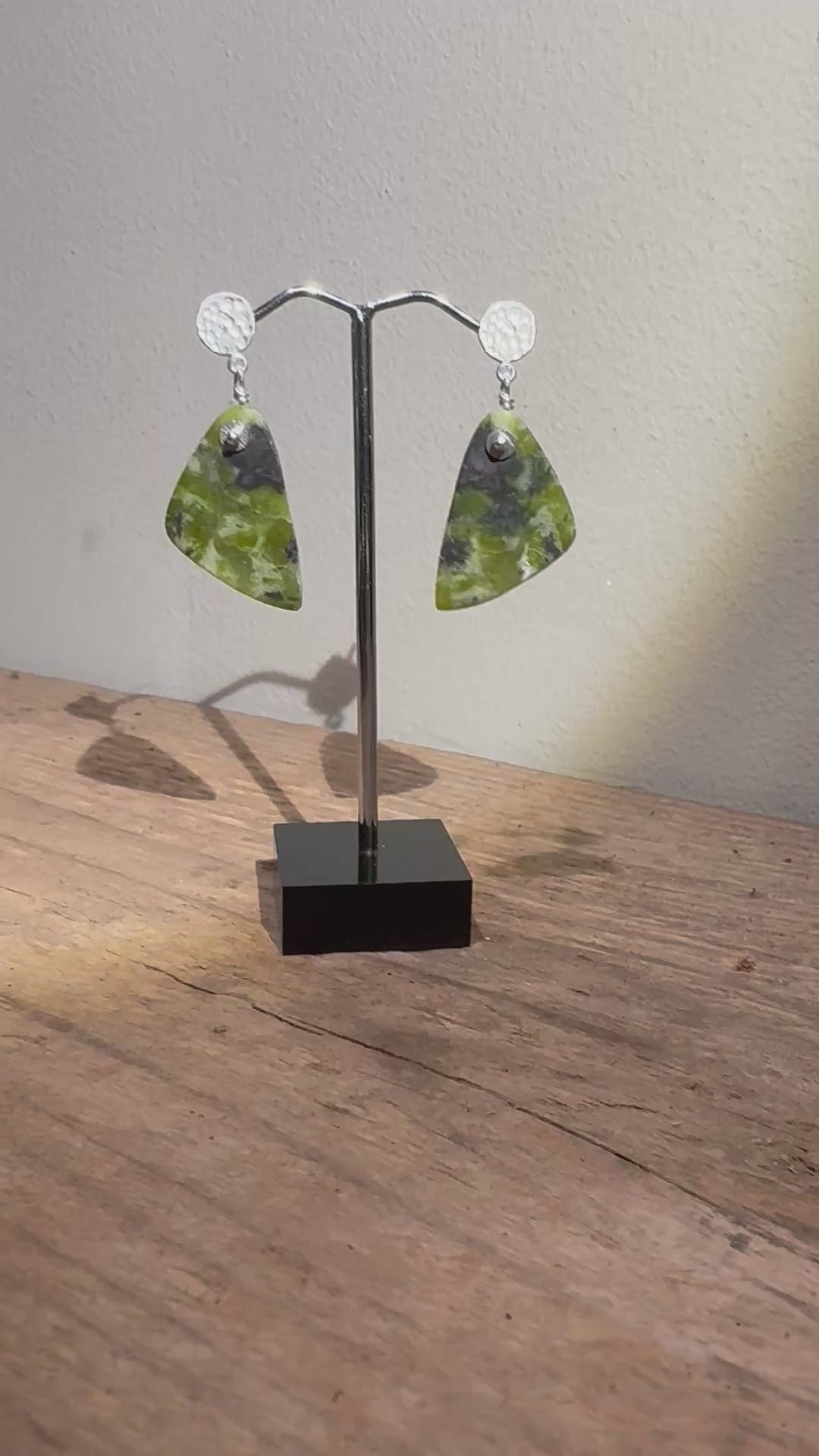 If you love green, you’ll adore these rare Norwegian serpentine slice earrings. Each unique gemstone is suspended from a hand-hammered pair of satin-finished sterling silver studs, adding a soft, contemporary contrast to the natural stone.