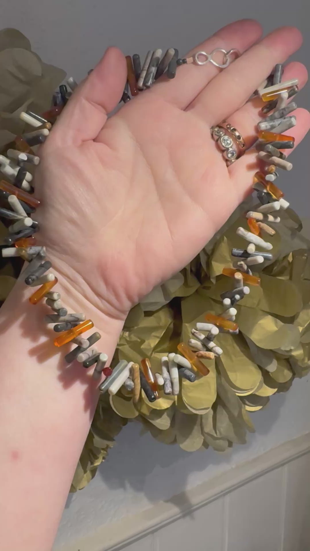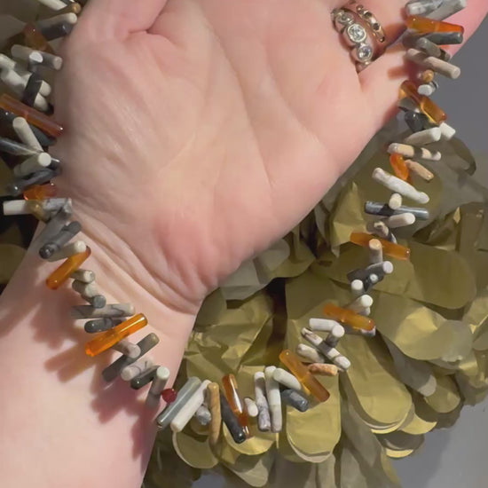 Picasso Jasper & Cornelian stick bead necklace.