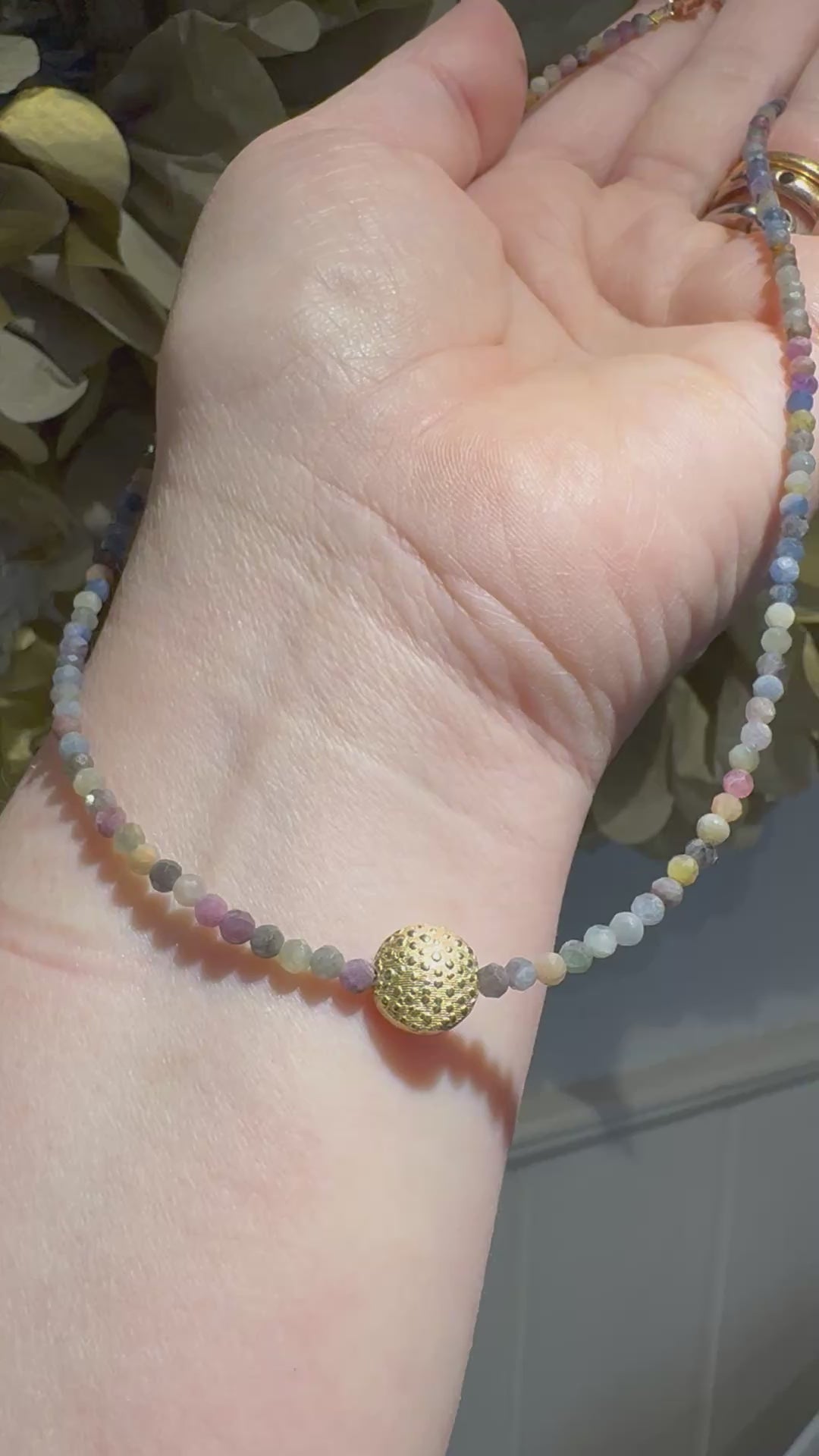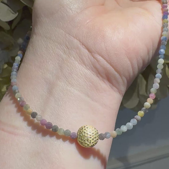 These tiny faceted natural Sapphire beads really to create a huge impact. They are beautifully faced and cut to capture all the sparkles. See short video - for this amazing effect & scale. It has a central silver gilt textured bead detail & easy to use/smart magnetic clasp. 17 inches long, my clients “happy-length”.