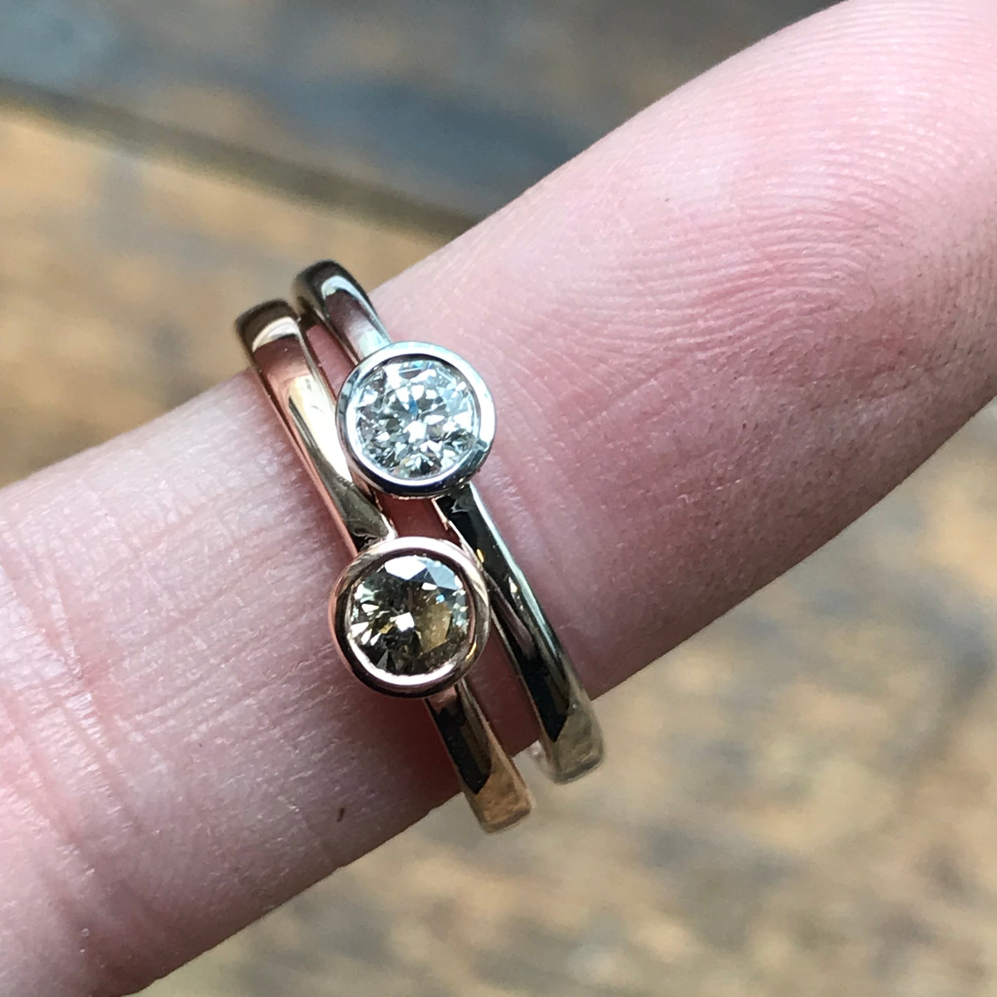 This is my signature quarter carat white 0.25pt diamond solitaire ring in white gold—an elegant, understated classic and my best-selling single-stone rub-over design.